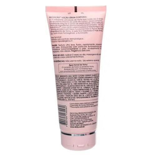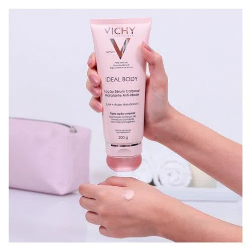 Ideal Body Loção Sérum de Vichy é o primeiro hidratante que ajuda a combater os três sinais do envelhecimento da pele do corpo. Pois possui uma fragrância delicada, além de uma textura sérum não oleosa, que é rapidamente absorvida pela pele o que permite vestir-se logo após a aplicação.